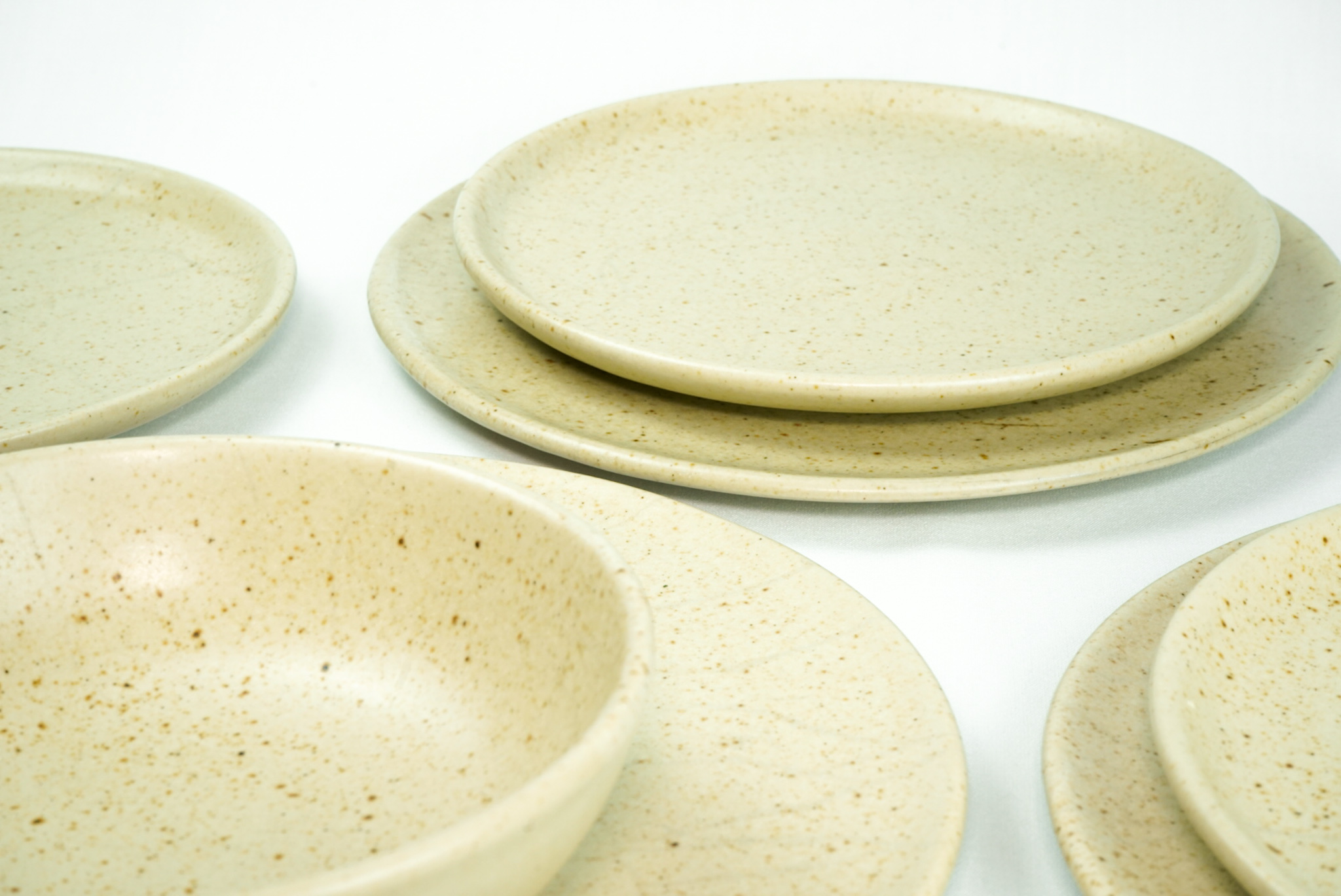 Juego de 6 Platos de cerámica en beige pigmentada, Alfarería Ávalos. Diámetro: 26 cm.